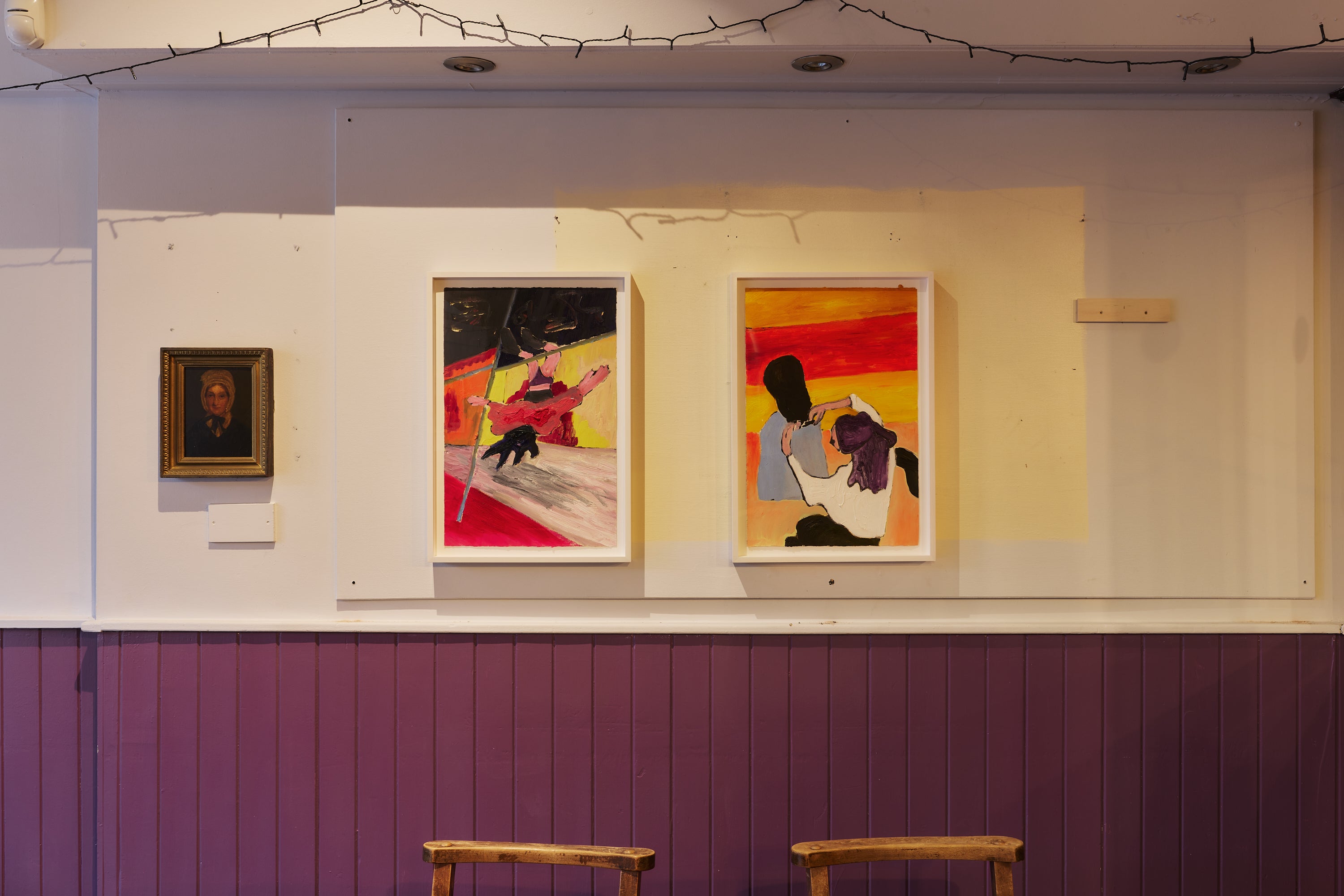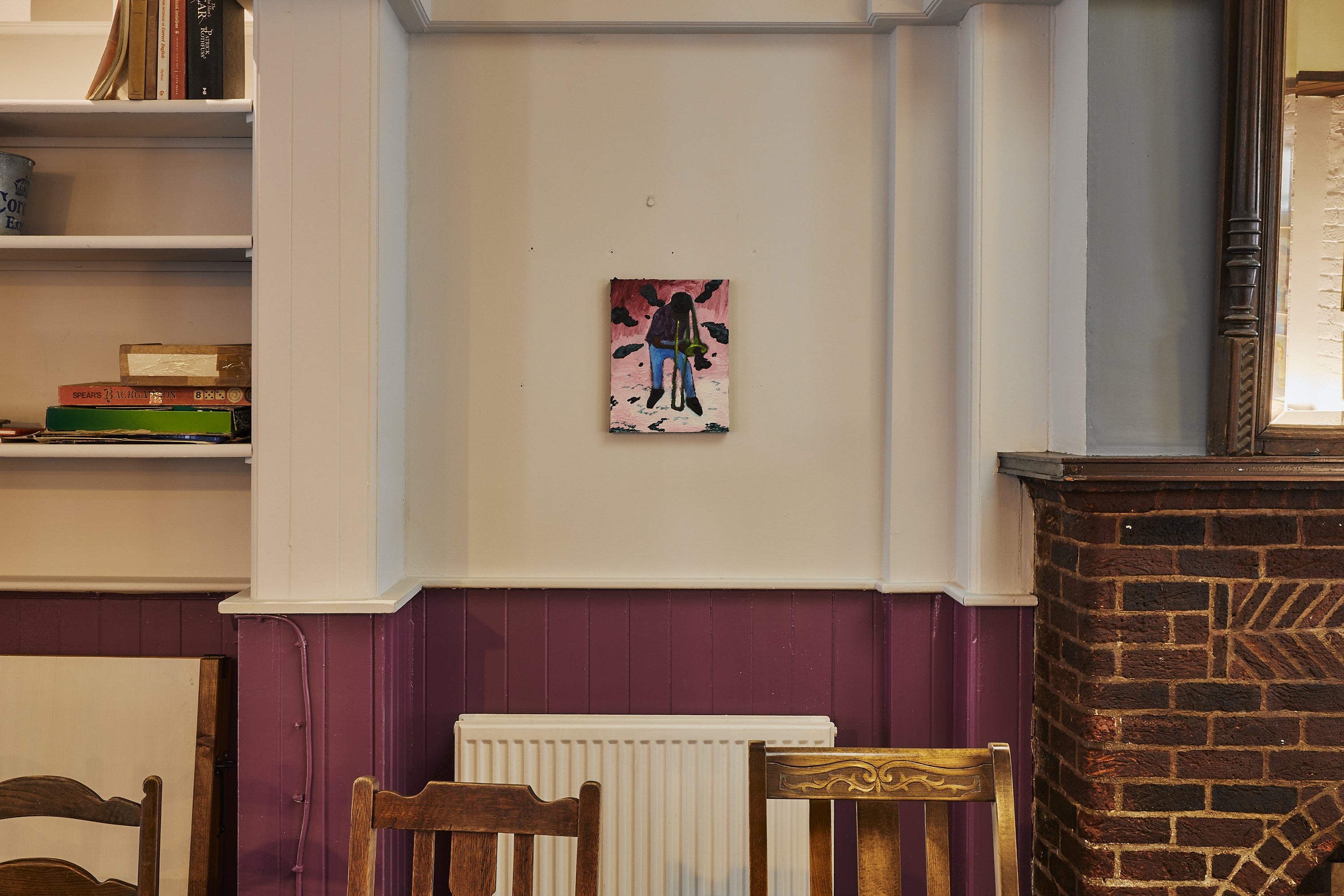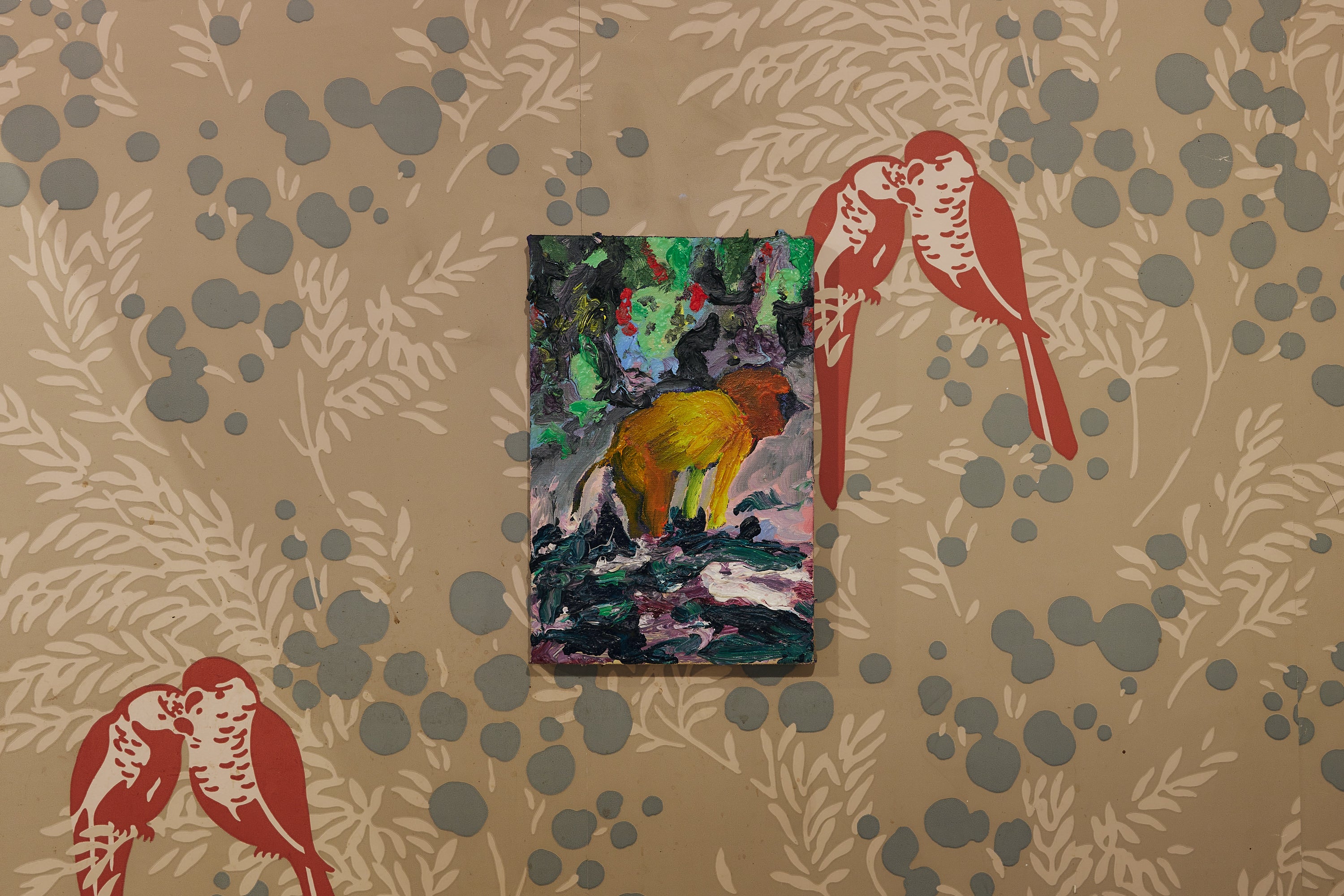 In response to this location, Florian Krewer presents a new body of small-scale paintings and works on paper. Cruel The Night Café intimately explores underground nightlife scenes, in relation to the notion of the artist bar as a collective gathering space. The unfamiliar backdrop of the pub provides a new vantage point on this series of works, where Krewer depicts interior narrative scenes, including images of clubs, parties, drag queens, musicians, animals and Venetian masques. Situated between traces of past and present histories, the patina of the building echoes the scenes and surfaces found in Krewer’s paintings. Characterized by a strong tactility and a versatility in paint application, he plays with the dialectic relationship between smooth and coarse surfaces, rendering elements in thick impastos set against a smooth background - uncovering a tension in both the texture and subject matter of the material.